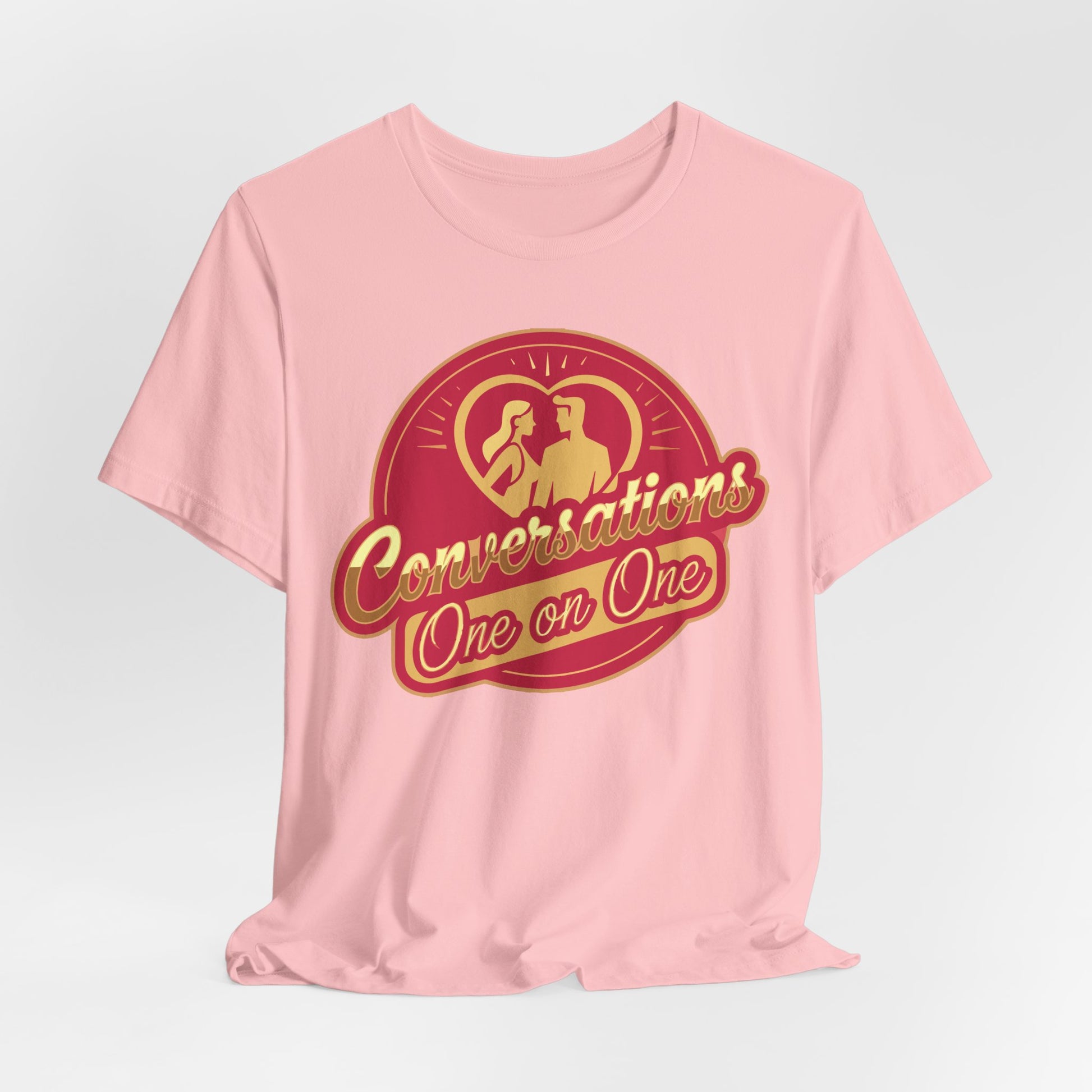 A lightweight, vintage-inspired tee that carries a warm, conversational vibe. The soft Airlume combed cotton feels breathable against the skin, while the retro round logo — two silhouettes and the script 'Conversations One on One' — invites approachable, face-to-face moments. Wear it layered over a long-sleeve on cool evenings or alone when the sun is out. The retail cut keeps the silhouette neat enough for casual coffee dates, community meetups, or low-key open-mic nights, while the durable side seams and ribbed collar hold the shape through many washes. Ethically made and softly finished, this shirt settles into your rotation and starts conversations wherever you go.