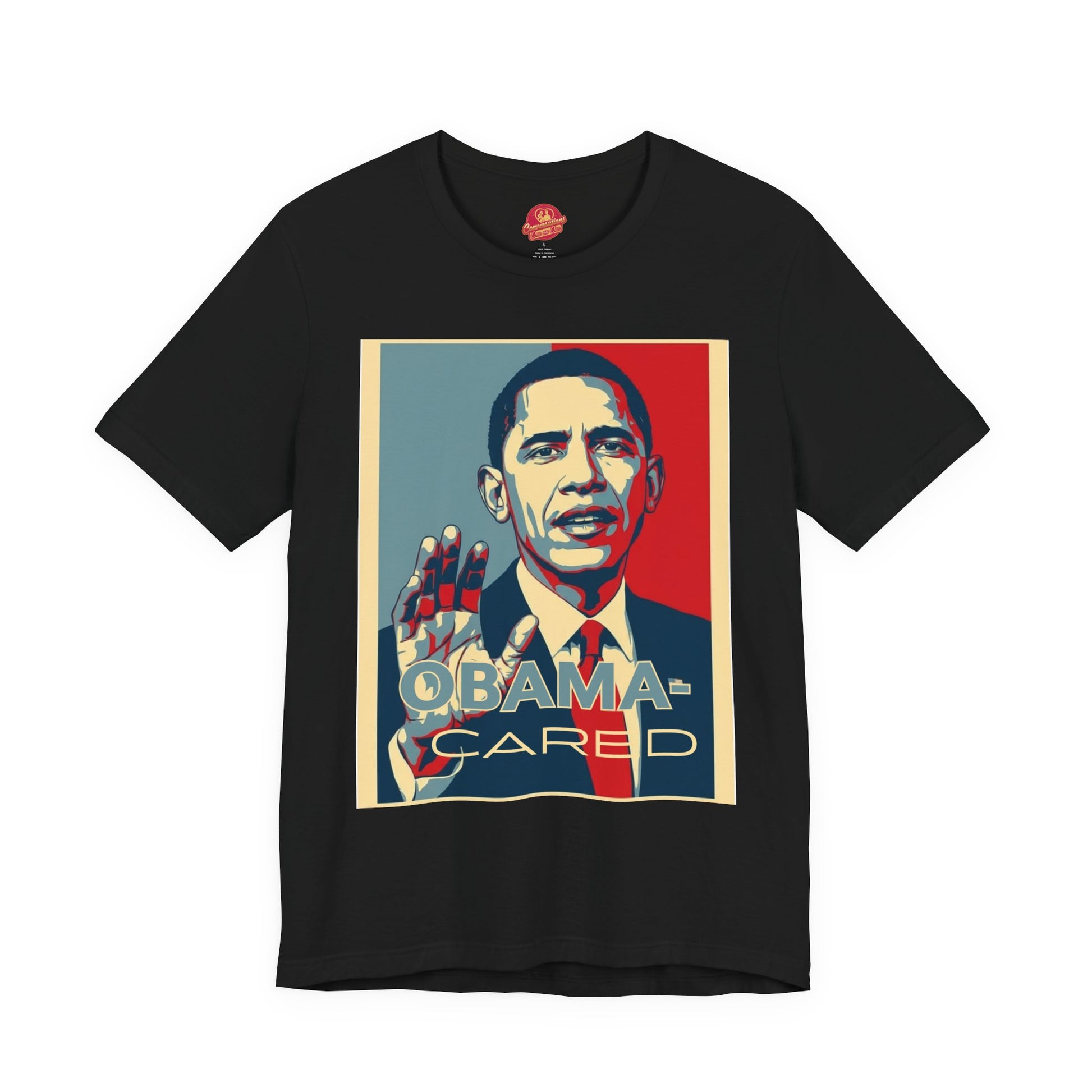 A lightweight, breathable jersey tee with a bold, vintage-inspired Obama graphic centered on the chest. The design uses a tri-color, posterized palette for a high-contrast look that reads from a distance. Cut in a retail fit with a classic crew neckline, this shirt layers easily under jackets or stands on its own. Details such as side seams, shoulder tape, and a ribbed knit collar keep the shape crisp through repeated wear. Tear-away label and soft Airlume combed ring-spun cotton make it comfortable against the skin. This shirt brings a confident, expressive energy to casual days, rallies, or social meetups where visual statements matter.